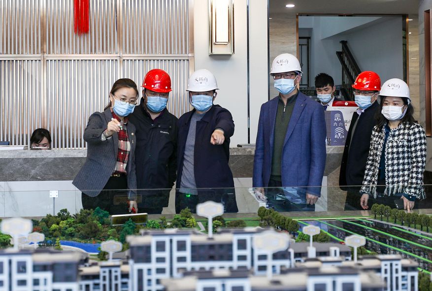 葉善祥一行先后實地查看了天瑞府、揚州頤和醫(yī)療健康中心、九境融園項目建設情況,詳細了解了置業(yè)公司關于疫情防控工作、復工復產(chǎn)、施工進度情況。隨后召開會議,進一步研究項目進度安排、存在的問題及工作舉措。
