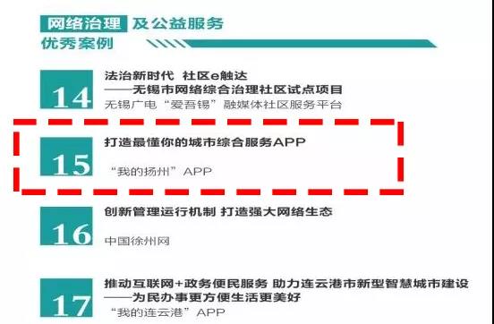 近日,江蘇省委網(wǎng)信辦牽頭開展的2020年度“文明辦網(wǎng)”創(chuàng)建優(yōu)秀案例征集活動拉下帷幕,共征集到99個典型案例,遴選推介20個創(chuàng)建優(yōu)秀案例。其中,城控集團“我的揚州APP”《打造最懂你的城市綜合服務APP》作為網(wǎng)絡治理及公益服務的優(yōu)秀案例入選20個“文明辦網(wǎng)”創(chuàng)建優(yōu)秀案例。
