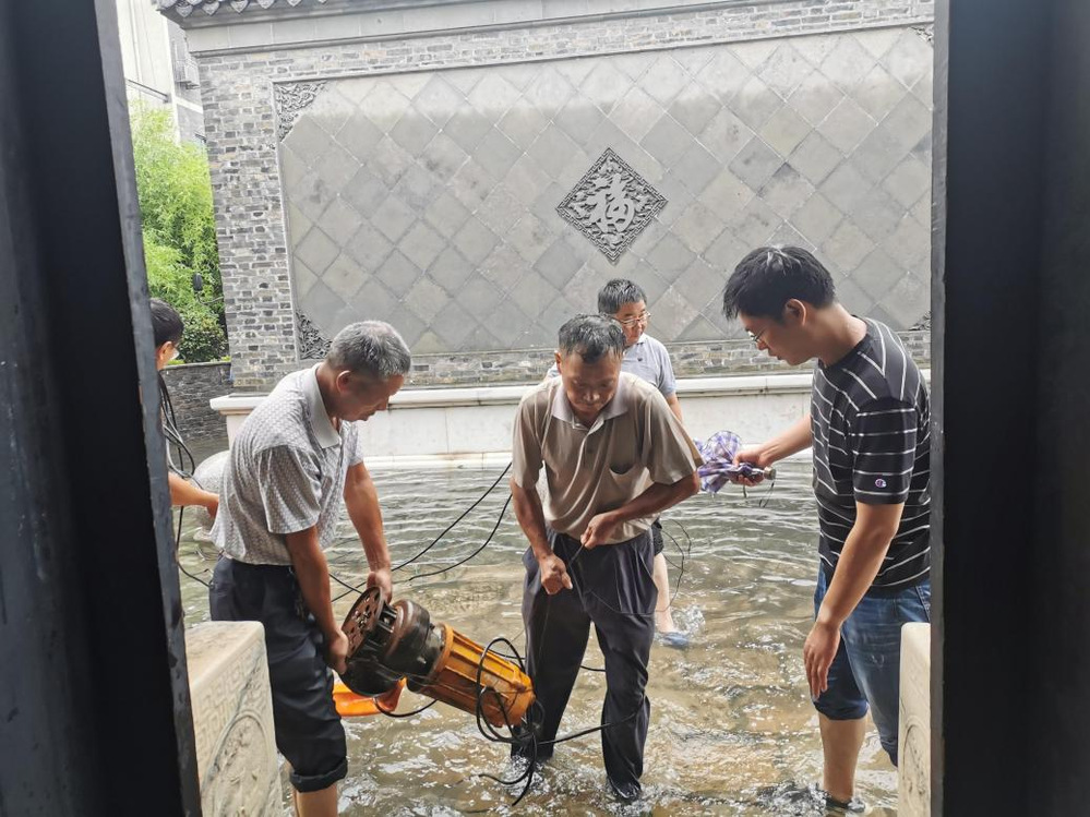經(jīng)排查發(fā)現(xiàn)緊鄰國家級(jí)文物保護(hù)單位汪氏鹽商住宅周邊的南河下、省級(jí)文保單位蔚圃南側(cè)的風(fēng)箱巷出現(xiàn)嚴(yán)重積水情況,公司第一時(shí)間組織工作人員,攜帶抽水泵等設(shè)備進(jìn)行抽水,最大程度降低暴雨對(duì)古宅的影響,確保國有資產(chǎn)的安全。