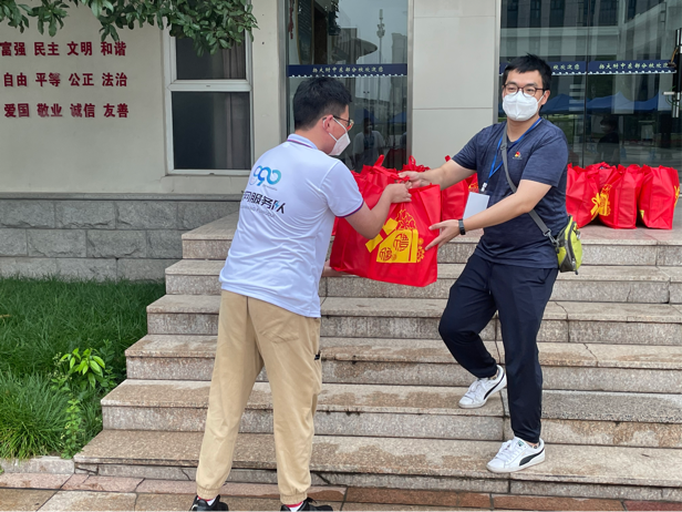 為讓一線的防疫工作人員感受到來自公司的溫暖,8月11日,在管網(wǎng)公司黨支部精心安排下,服務(wù)隊(duì)25名抗疫志愿者在履行完揚(yáng)大附中東部分校核酸檢測點(diǎn)當(dāng)天的工作任務(wù)后,收到了公司黨支部送來的關(guān)愛與溫暖?!肮鞠氲锰艿嚼?!我家兩口子都是抗疫志愿者,她在邗江、我在廣陵,根本沒有時(shí)間去采購食材!”“我家已經(jīng)快沒米下鍋了,這真是解了我一家子的燃眉之急!”“太好了,這回我媽不用冒著風(fēng)險(xiǎn)出門買米了!”“我女兒終于可以吃上雞蛋了!”大家你一言我一語,說不出的高興。