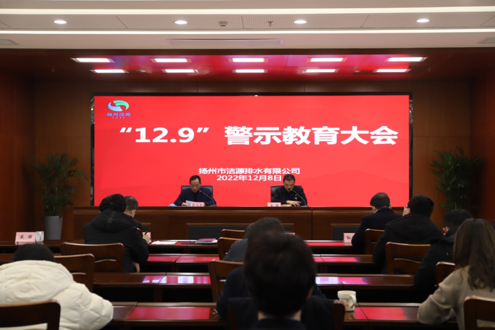 12月8日下午,潔源排水公司召開了“12.9”警示教育大會,公司領(lǐng)導(dǎo)班子全體成員、全體中層干部、助理及重點崗位人員參加了活動。