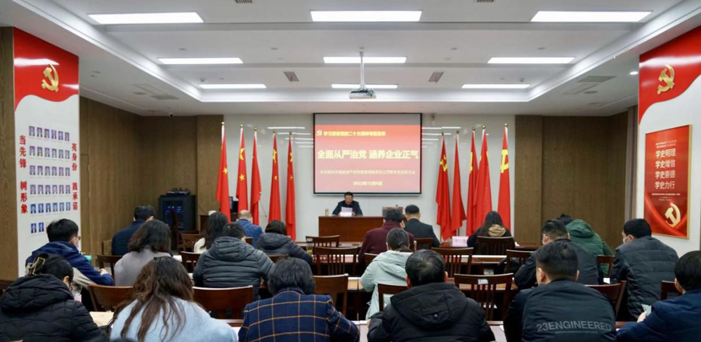 為深入學(xué)習(xí)貫徹黨的二十大精神,堅定不移推進全面從嚴(yán)治黨向縱深發(fā)展,根據(jù)公司學(xué)習(xí)宣傳貫徹黨的二十大精神工作計劃以及“12·9”黨風(fēng)廉政教育日宣傳教育活動方案,12月9日下午,公司聯(lián)合黨支部書記、董事長以《全面從嚴(yán)治黨 涵養(yǎng)企業(yè)正氣》為題,開展了學(xué)習(xí)貫徹黨的二十大精神專題宣講。公司全體黨員、中層干部參加了會議。