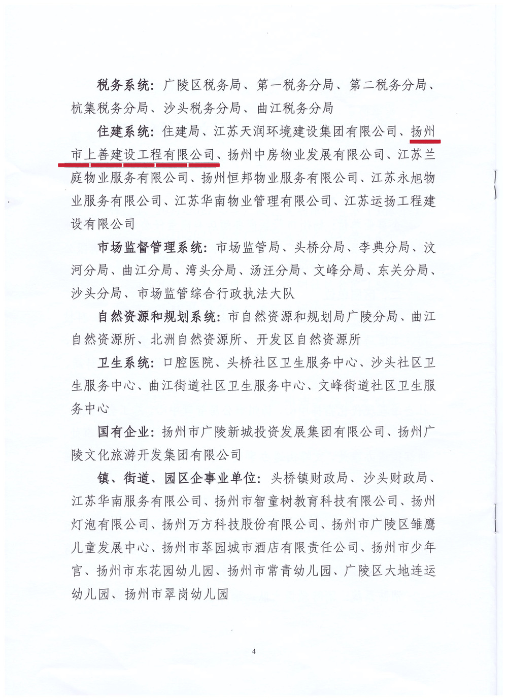 上善公司在集團(tuán)和廣陵區(qū)文明辦的正確指導(dǎo)下,積極探索文明建設(shè)的新思路、新方法,實現(xiàn)物質(zhì)文明和精神文明的同步提升。近期,廣陵區(qū)文明建設(shè)指導(dǎo)委員會發(fā)文表彰了2021-2022年度廣陵區(qū)文明單位,上善公司在此次評選中脫穎而出,被授予該項榮譽稱號。