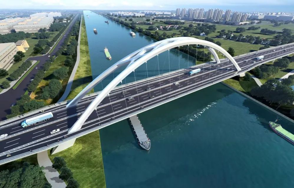 華揚(yáng)東路跨京杭運(yùn)河大橋建設(shè)工程采用雙向六車道標(biāo)準(zhǔn),設(shè)計(jì)速度為50km/h,標(biāo)準(zhǔn)段紅線寬度40m,全長1.92km。其中,新建橋梁1座,主橋采用200m提籃拱橋,引橋采用混凝土連續(xù)箱梁??偼顿Y約4.5億元。華揚(yáng)東路是揚(yáng)州中心城區(qū)規(guī)劃橫向城市主干路,是“二十五橫十七縱”主干路網(wǎng)的重要組成,是溝通經(jīng)濟(jì)開發(fā)區(qū)與廣陵區(qū)的重要通道。