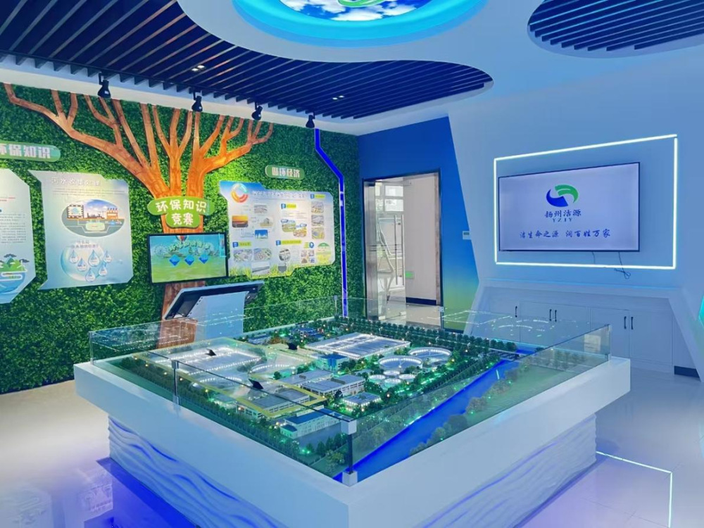 潔源環(huán)境公司一直積極致力于打造集生態(tài)知識科普、環(huán)保實踐體驗、綠色理念傳播于一體的綜合性環(huán)保教育平臺。內(nèi)部共設(shè)有1個總館和3個分館,室內(nèi)展廳內(nèi)設(shè)有2套廠區(qū)布局沙盤、3套宣傳大屏、2套宣傳滾動屏、1套人機(jī)互動觸摸屏、1套交互式答題機(jī)等多媒體設(shè)施;室外設(shè)施主要涵蓋污水預(yù)處理、生物處理和提標(biāo)段處理、中水回用等污水處理設(shè)施。