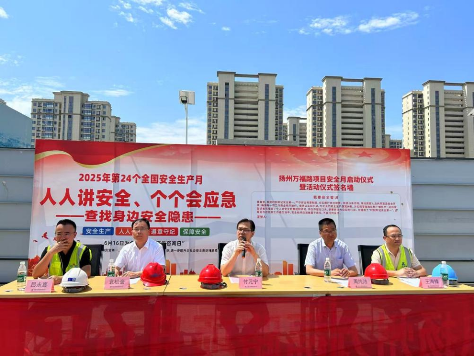 為深入貫徹落實安全生產(chǎn)責任制,扎實推進安全生產(chǎn)工作,6月5日上午,上善公司在萬??焖俾窎|延建設(shè)工程現(xiàn)場舉行2025年“安全生產(chǎn)月”啟動儀式。公司領(lǐng)導(dǎo)班子、各方參建管理人員及各施工隊組50余人參加活動。