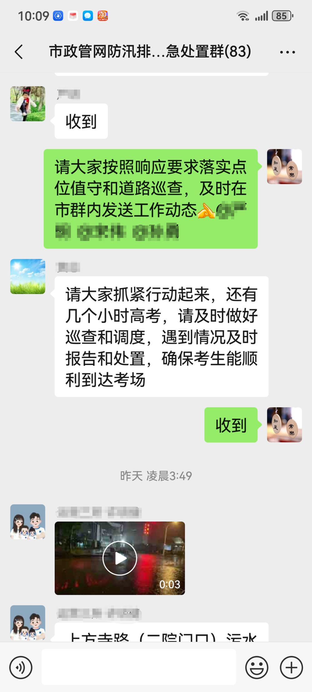 本次強降雨,管網公司共出動防汛人員80余人,防汛車輛設備10余臺,管轄范圍內的污水設施均運行正常,所有積水點位均處置及時得當。從雨前準備到應急搶險,從智慧監(jiān)測到物資保障,管網公司始終以“時時放心不下”的責任感,織密高考防汛安全網,以實際行動展現國企擔當。2025高考,管網公司祝愿每位考生:筆鋒所至,雨霽天晴!