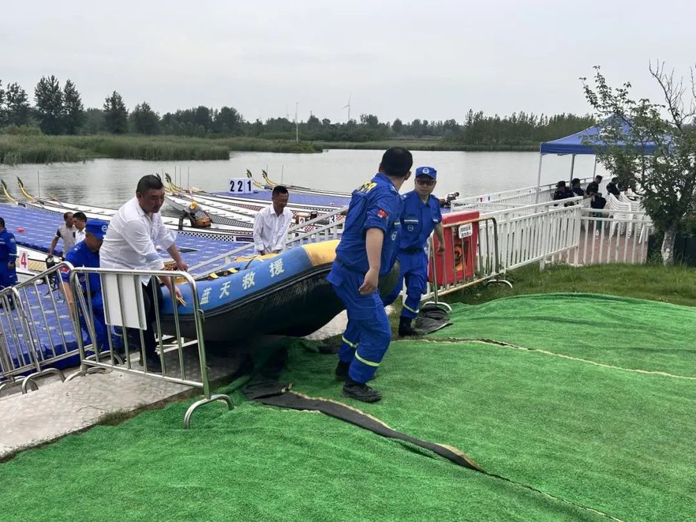 這支由退役軍人為主體的隊伍,充分發(fā)揮紀律嚴明、訓練有素的優(yōu)勢,賽前專項部署會上,明確“水域巡邏、隱患排查、應(yīng)急響應(yīng)”三大職責,針對賽場棗林灣水域特點制定“四艇聯(lián)動、分區(qū)覆蓋”方案。賽中,四艘專業(yè)汽艇分別駐守主航道、觀賽區(qū)、起點、終點關(guān)鍵點位,隊員配備救生設(shè)備、通訊電臺等專業(yè)工具,與北藍救援隊通過實時通訊同步賽場動態(tài),形成快速應(yīng)急響應(yīng)圈。重點監(jiān)測龍舟行進軌跡、觀眾區(qū)域安全距離,及時勸離靠近水域的無關(guān)人員,協(xié)助疏散突發(fā)擁擠的觀賽人群,圓滿完成了賽事安全保障、秩序維護和應(yīng)急支援任務(wù)。