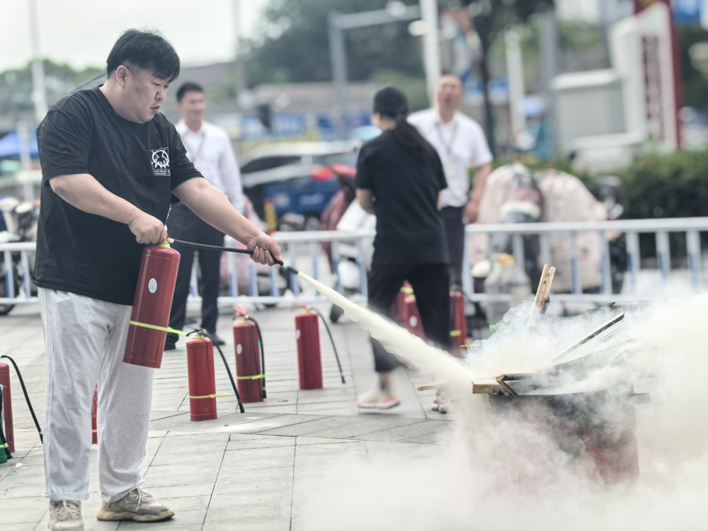 在室外實操環(huán)節(jié),安保人員組織商場工作人員和商戶代表開展滅火器滅油盆火演練,確保人人掌握技能。同時,商場技術團隊對消防報警系統(tǒng)及自動噴淋系統(tǒng)進行聯(lián)動測試,保障設施可靠運行。
